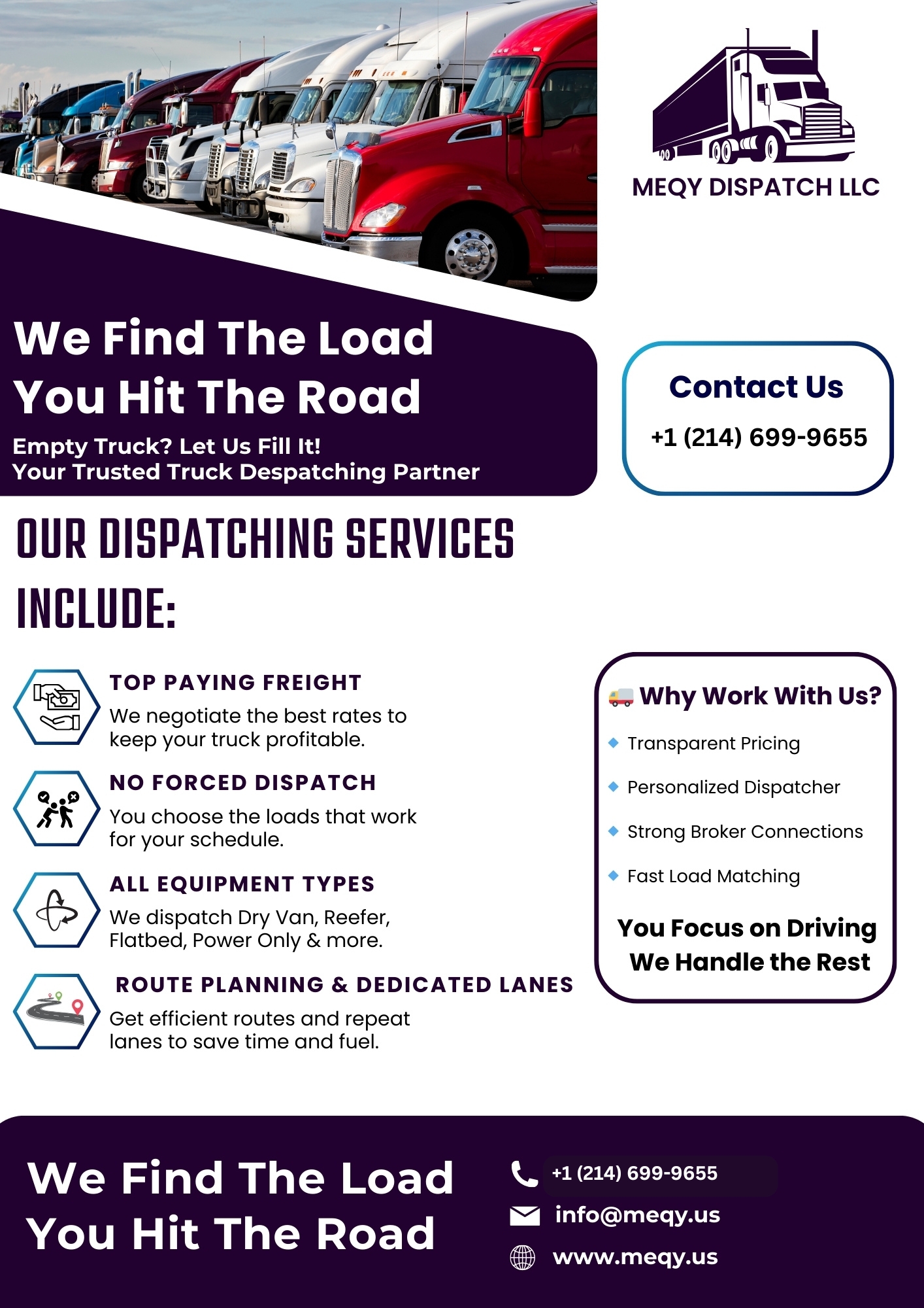 Sign up today and let Meqy Dispatch LLC help drive your business forward.
